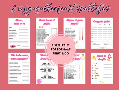 8 leuke spelletjes om het ijs te breken op een vrijgezellenfeest. In roze kleuren.